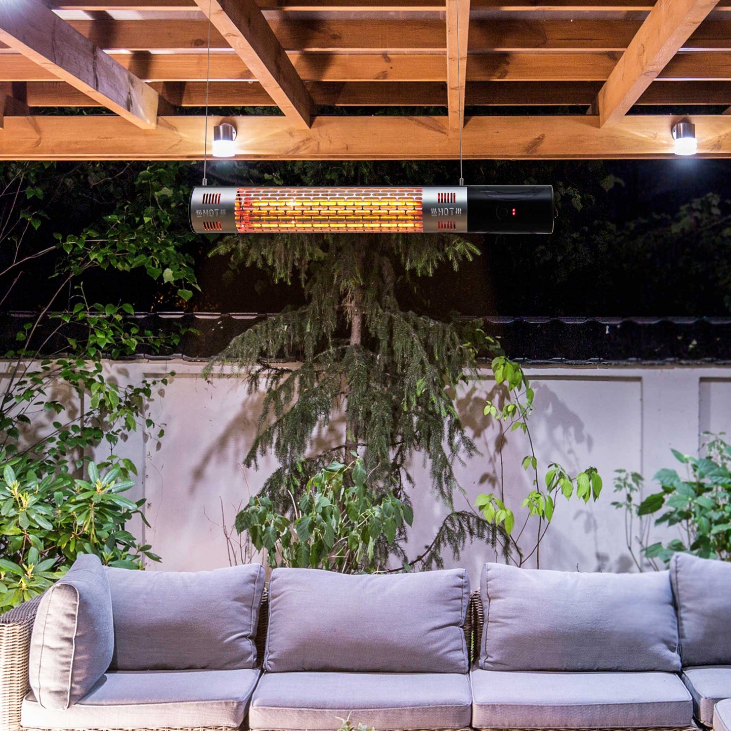 The 1500W outdoor electric heater from Outsunny gives cosy warmth and glorious lights to support your outdoor activities in cool evenings. The hanging patio heater can be installed on the ceiling with cables or be mounted on a wall using the wall bracket supplied. Ideal to use in various locations and can be switched on or off with the remote. The heater is IP66 rated for being used indoors or outdoors, making it fantastic additions for BBQ's Parties or entertaining any outdoor activities.