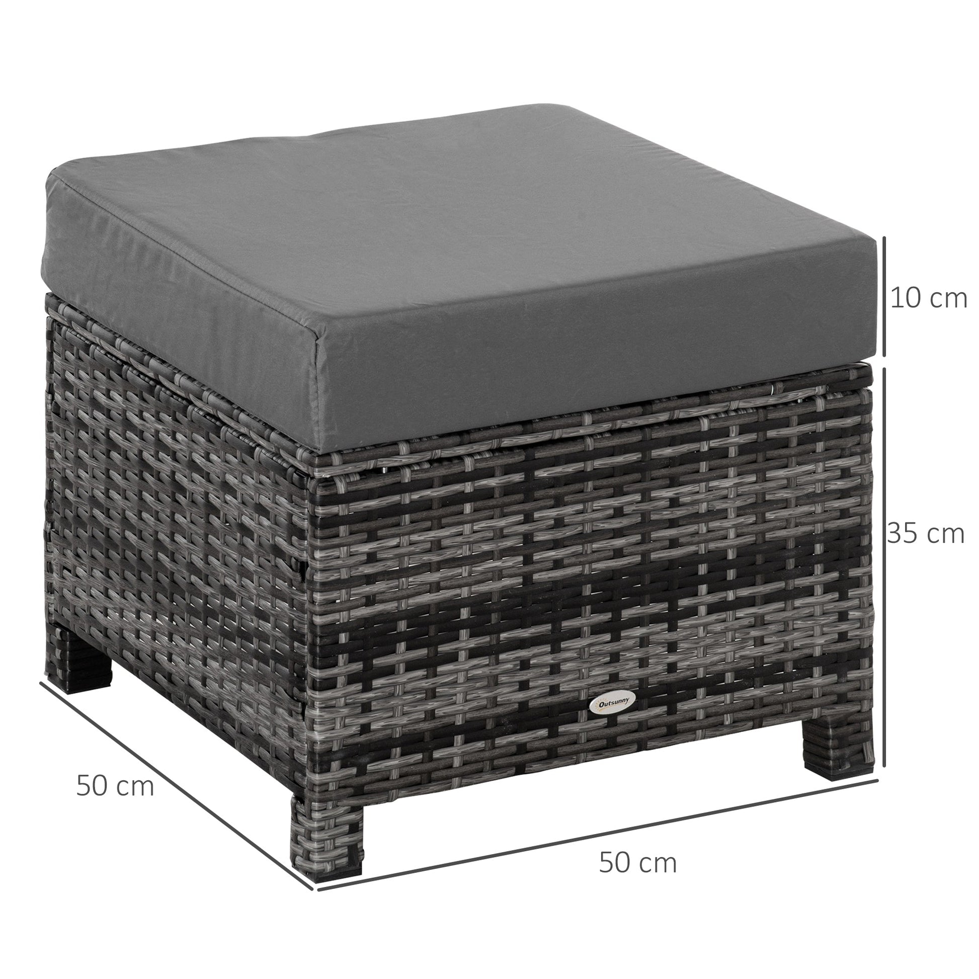 Outsunny Rattan Footstool Wicker Ottoman with Padded Seat Cushion Outdoor Patio Furniture for Garden Poolside Living Room, 50 x 50 x 35 cm, Grey