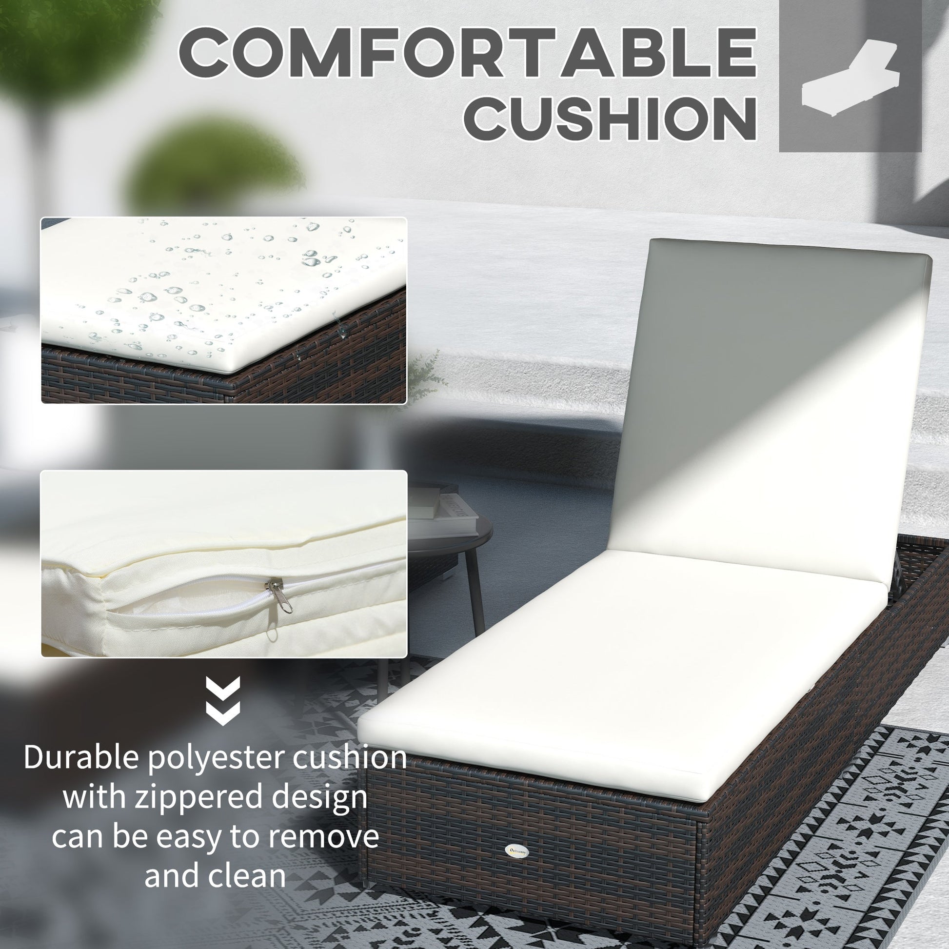 Outsunny Set of Two Rattan Sun Loungers, with Reclining Backs - Brown/Cream