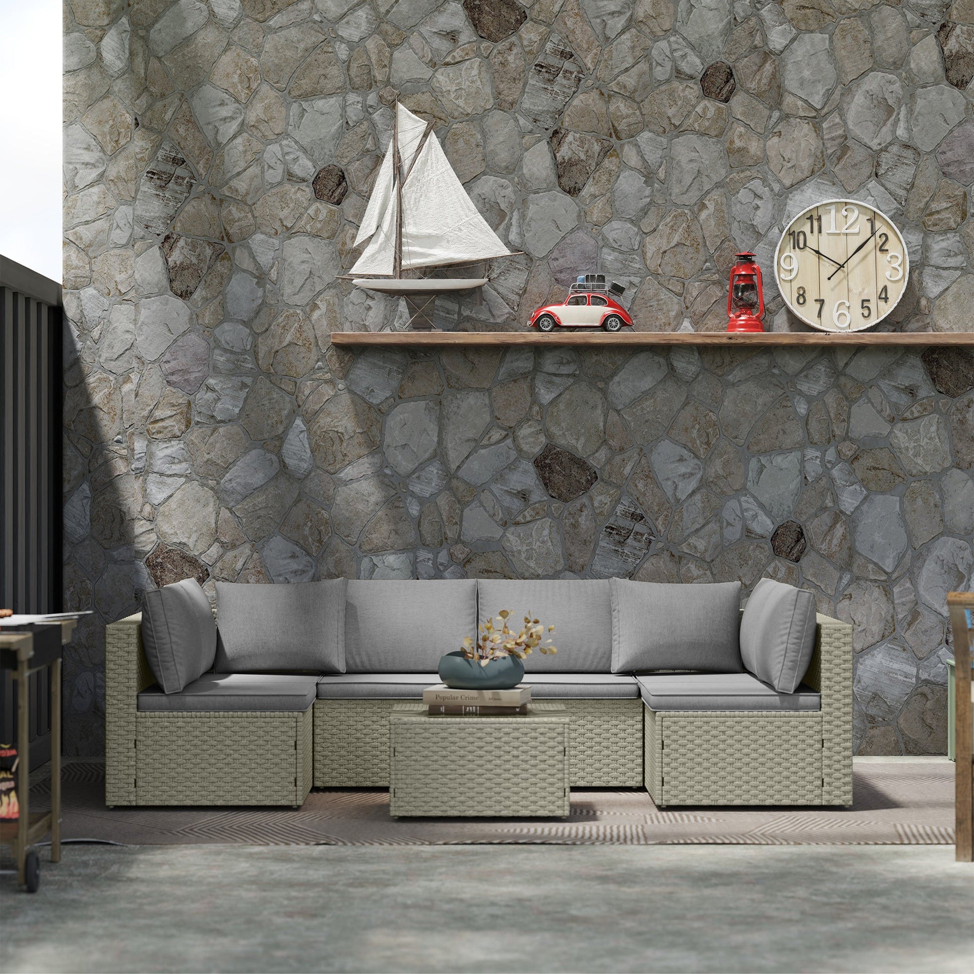 Outsunny Seven-Piece Modular Rattan Set - Light Brown