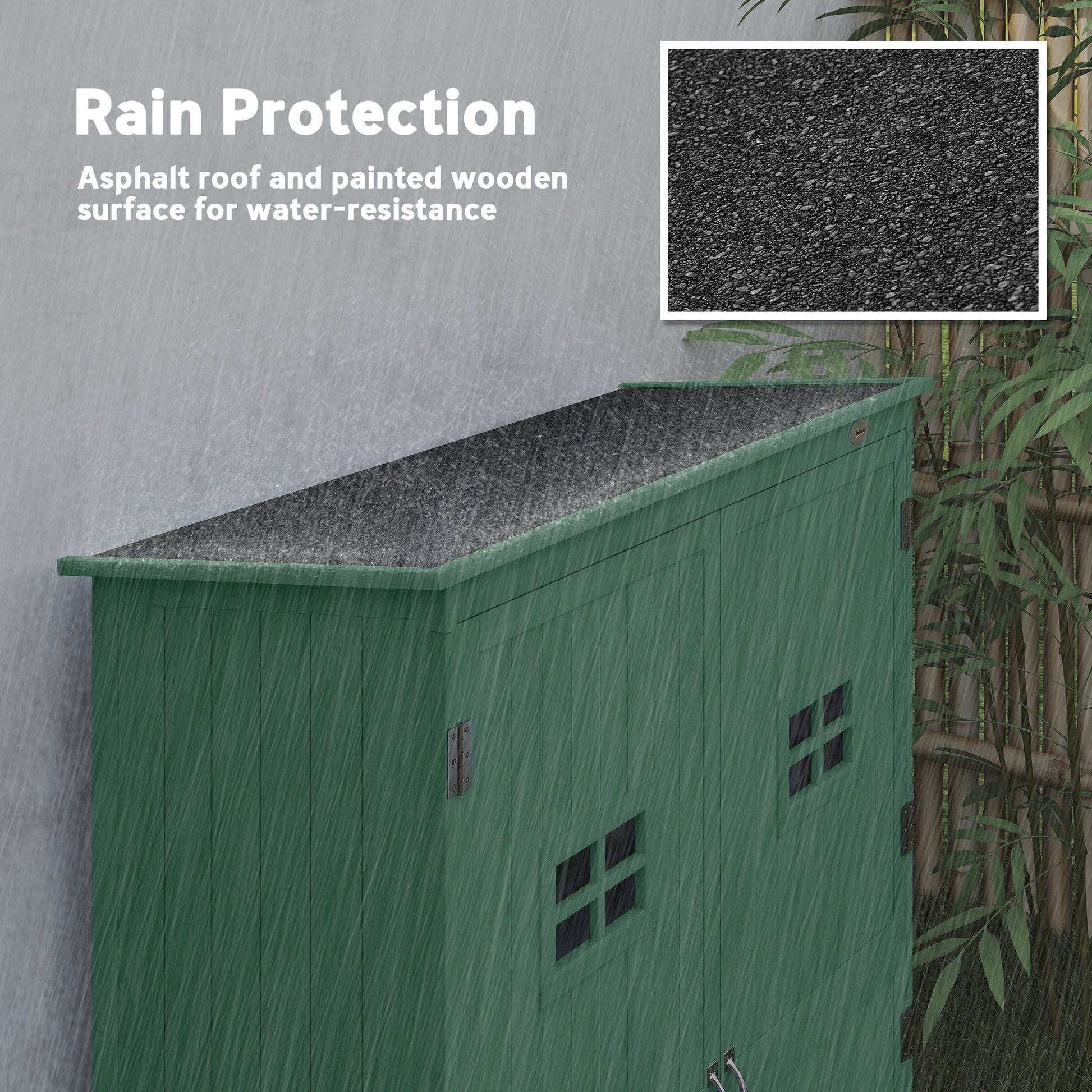 Outsunny Wooden Garden Shed with Two Windows, Tool Storage Cabinet, Outdoor Double Door organiser 127.5L x 50W x 164H cm, Green