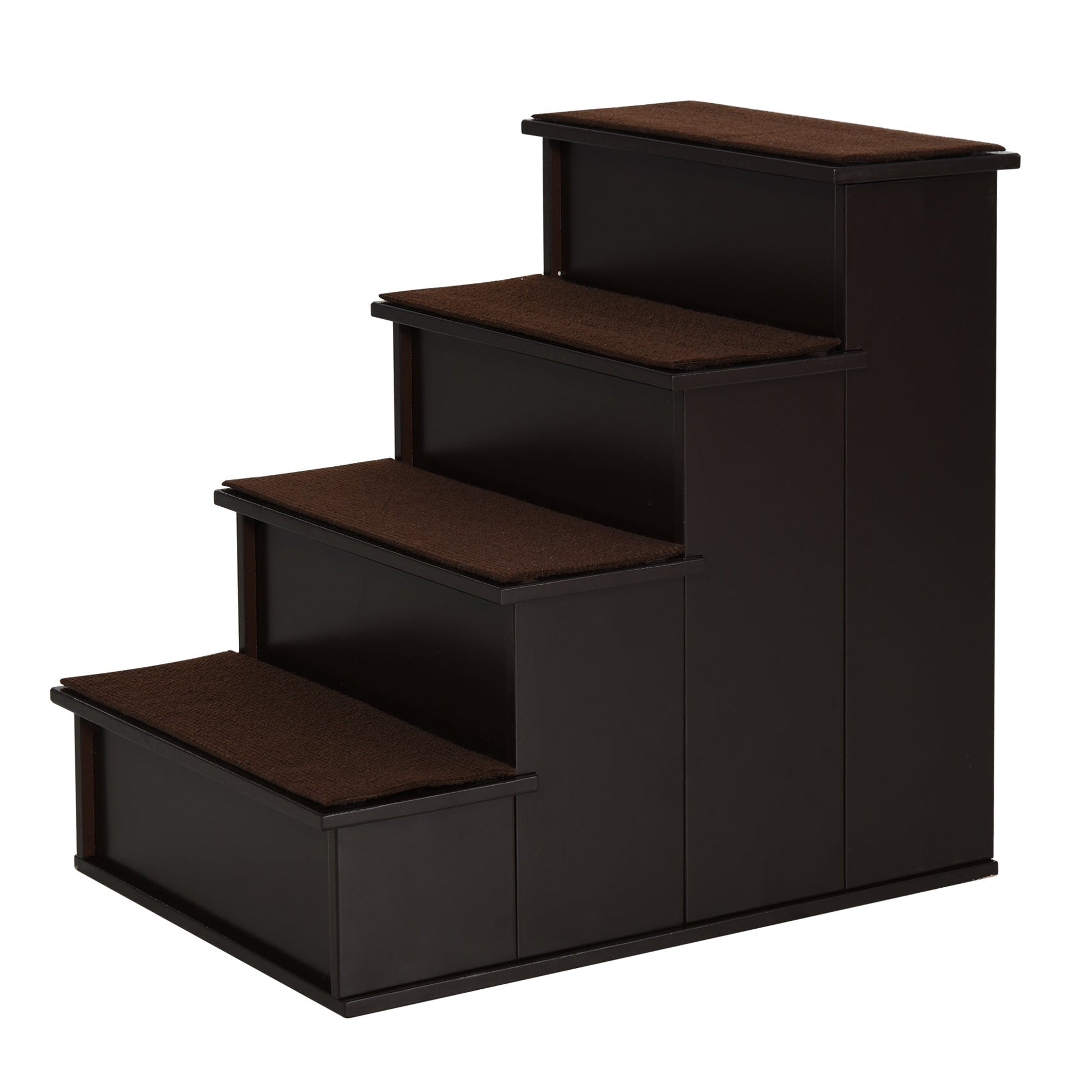 PawHut 4 Step Wooden Dog Steps Pet Stairs for Dogs, Cat Ladder for Bed Couch with Non-Slip Carpet 40 x 59 x 54.2 cm, Dark brown