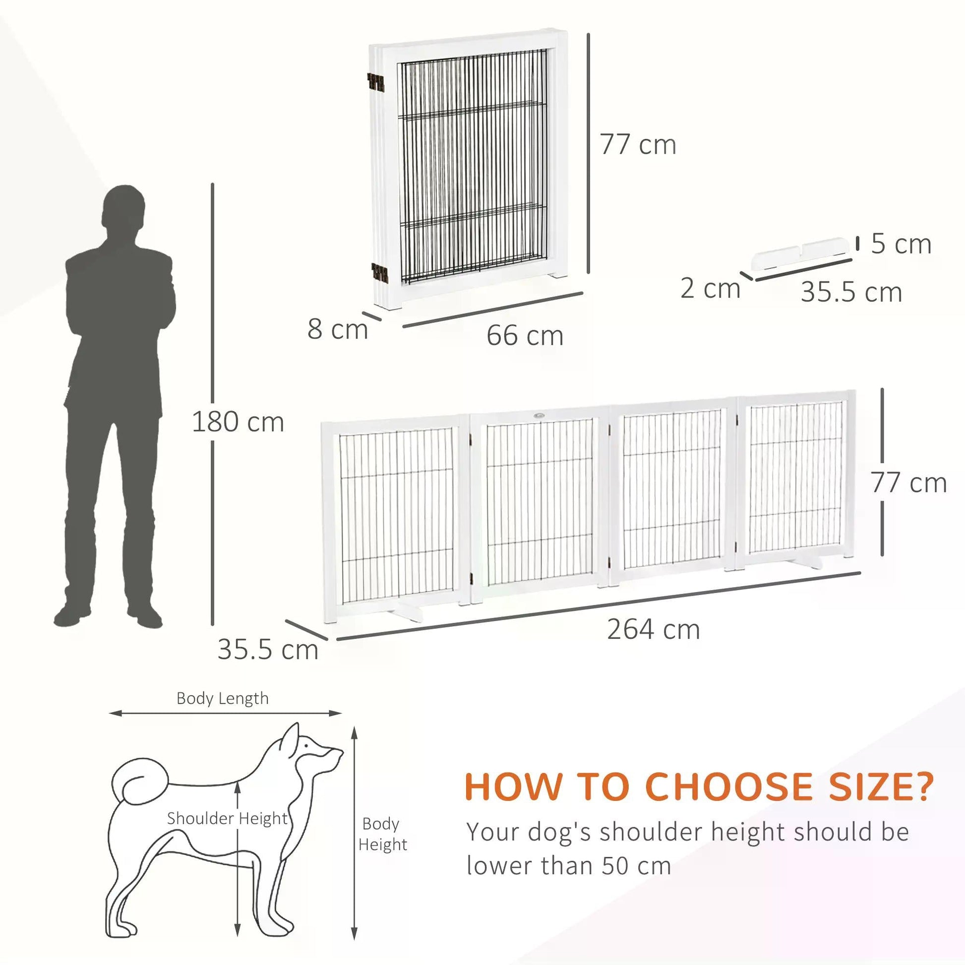 PawHut Freestanding Folding Pet Gate 4 Panels Dog Puppy Barrier with Support Feet