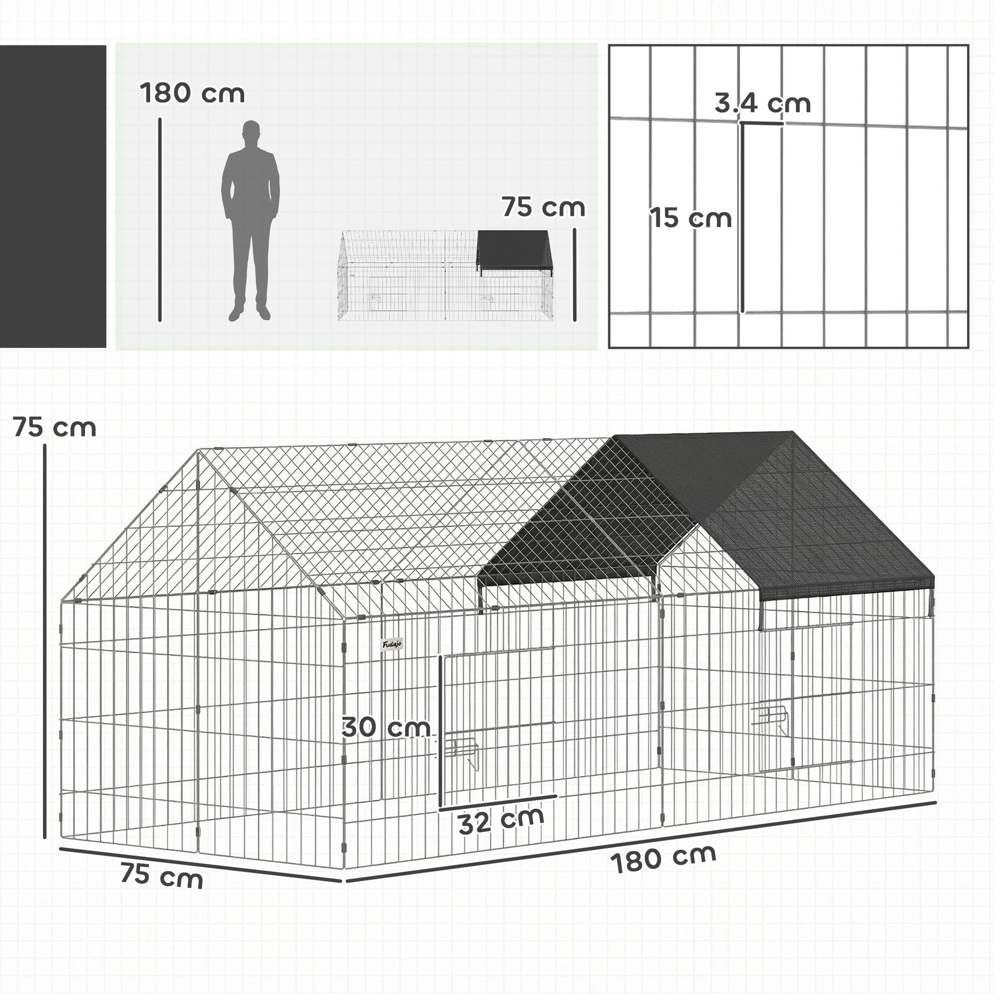 PawHut Rabbit Run with Protective Cover for Small Animals, Chickens, Guinea Pigs, Tortoises, 180 x 75 x 75 cm, Black