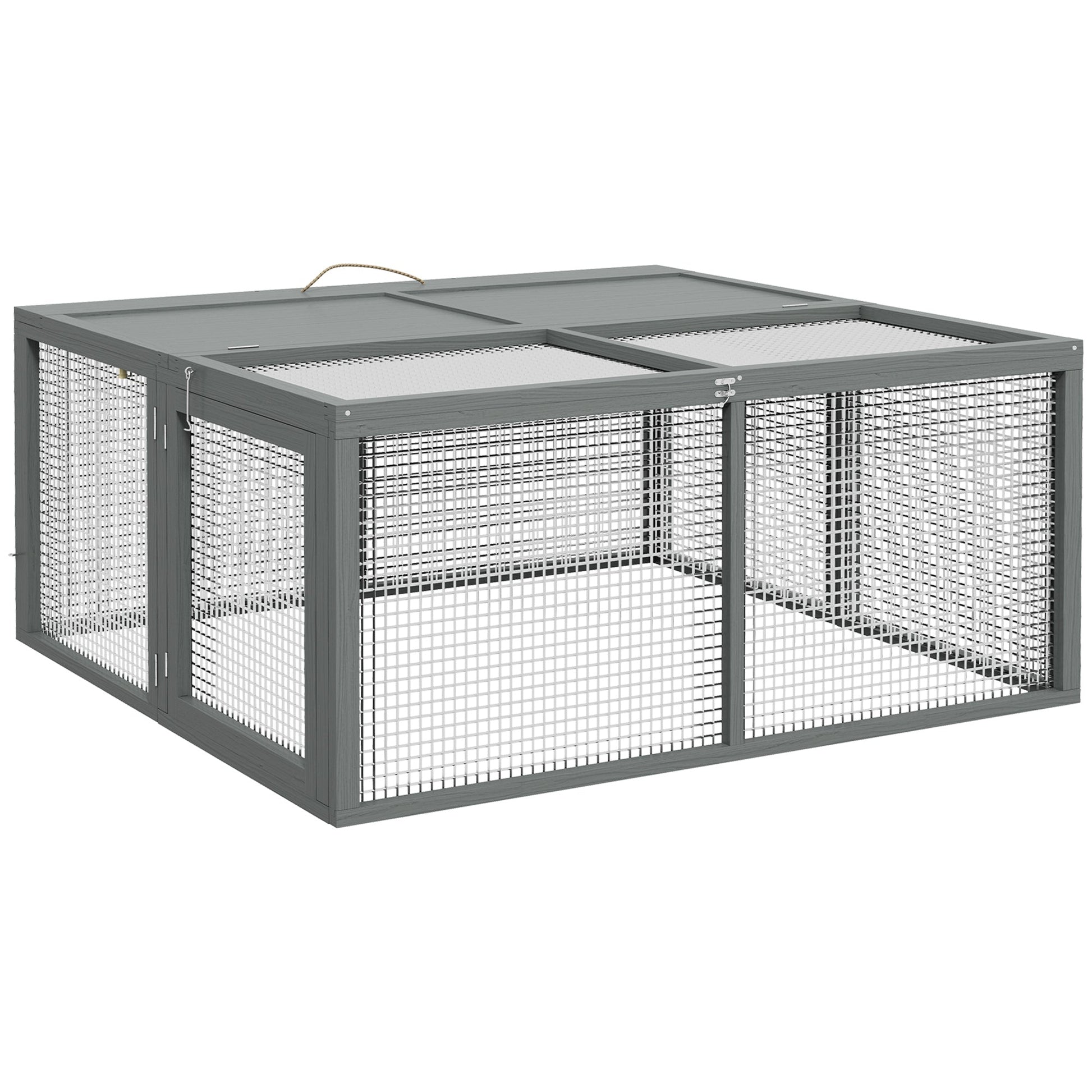 PawHut Folding Rabbit Run Wooden Large Rabbit Hutch for 2-3 Rabbits, Grey