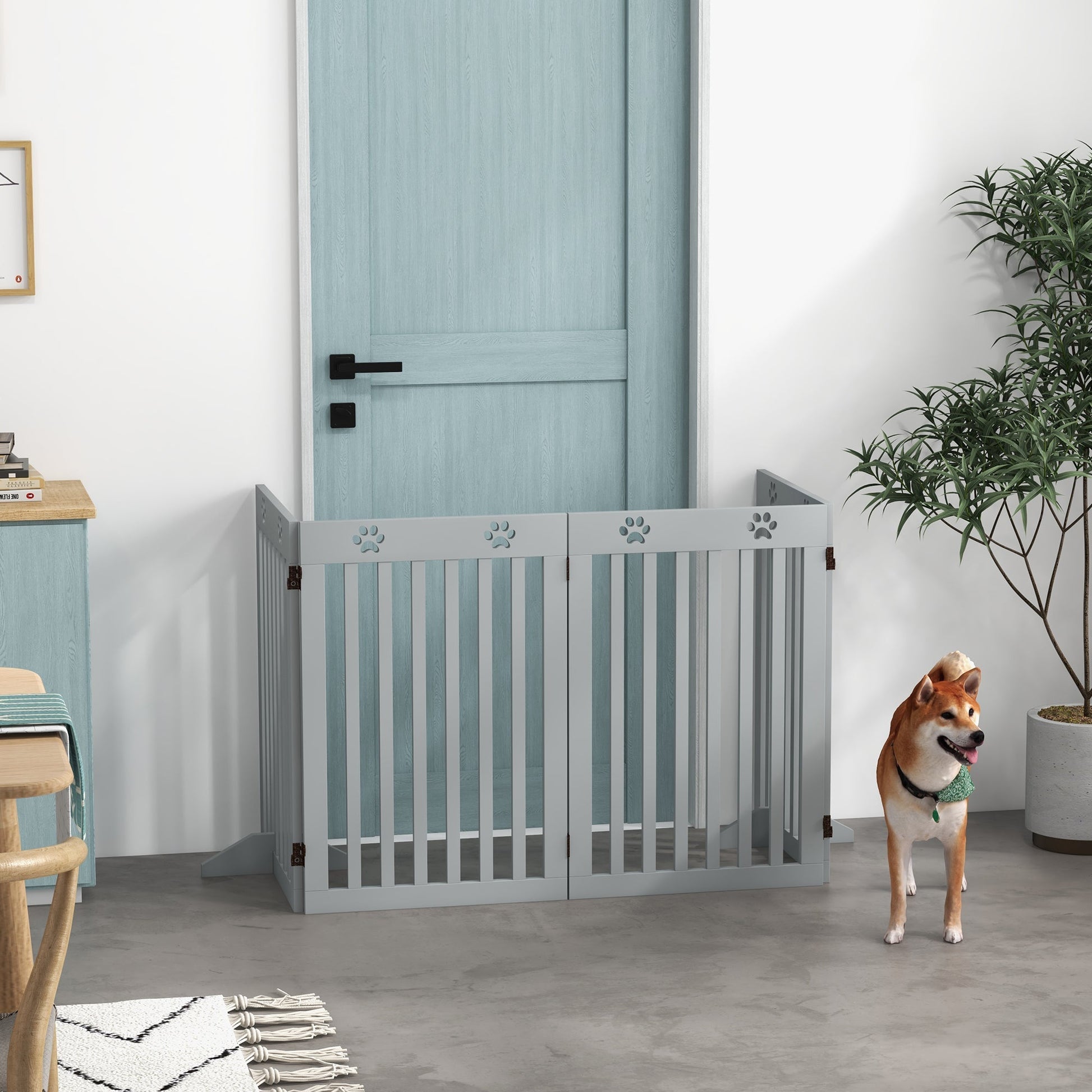 PawHut Wooden Pet Gate Foldable Freestanding Dog Safety Barrier w/ Support Feet, Grey