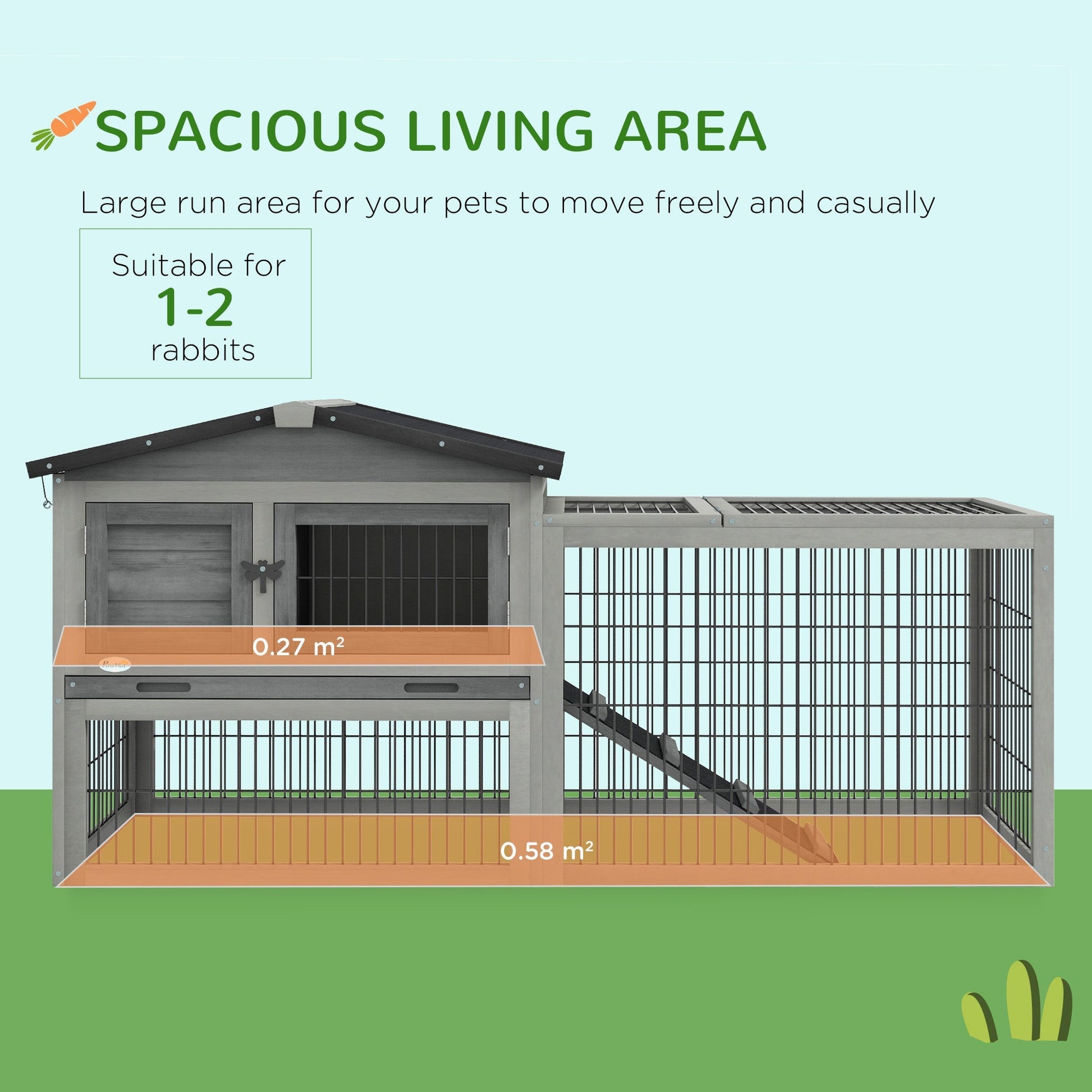 PawHut Wooden Rabbit Hutch with Outdoor Run Grey