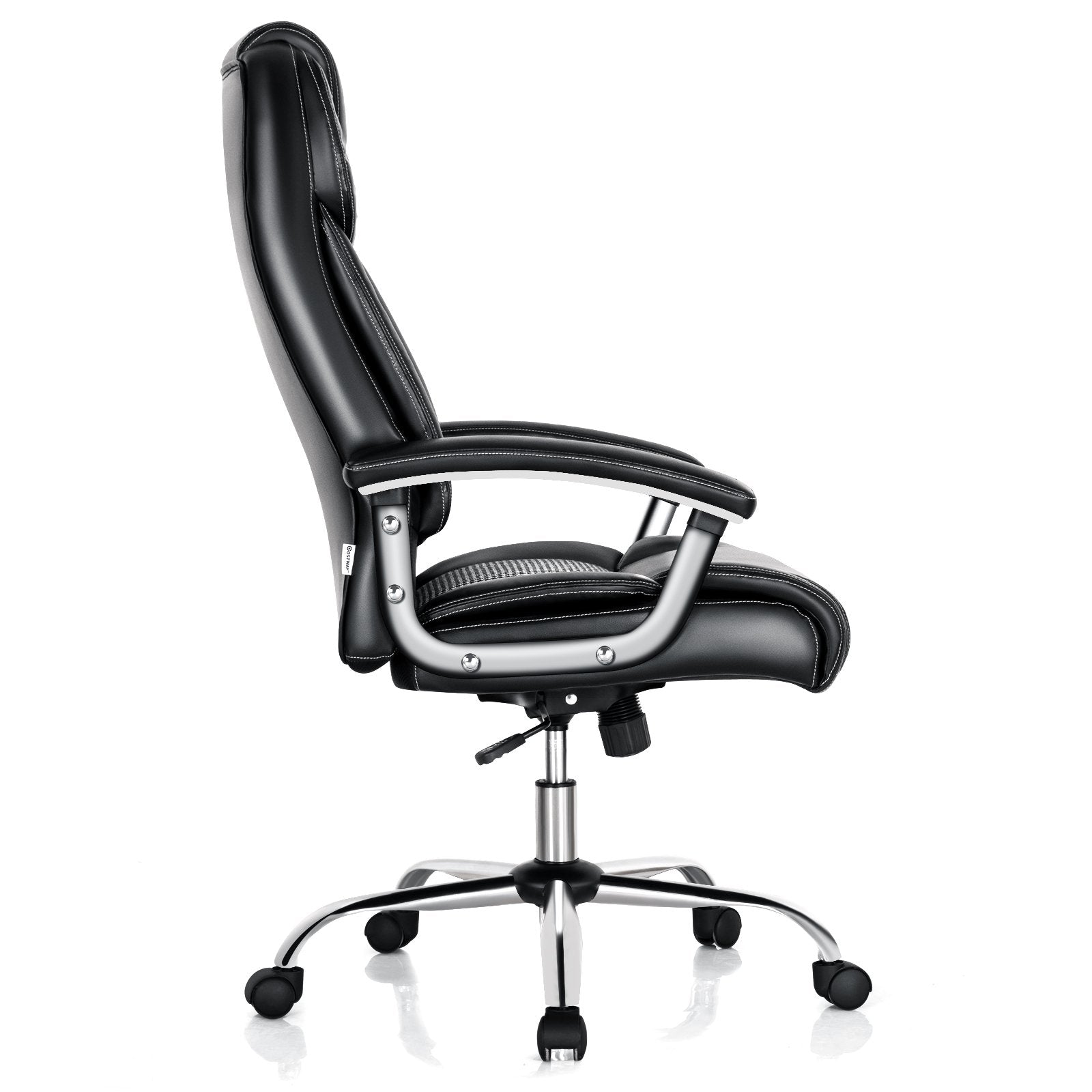 PVC Leather High-back Executive Chair with Padded Armrests-Black