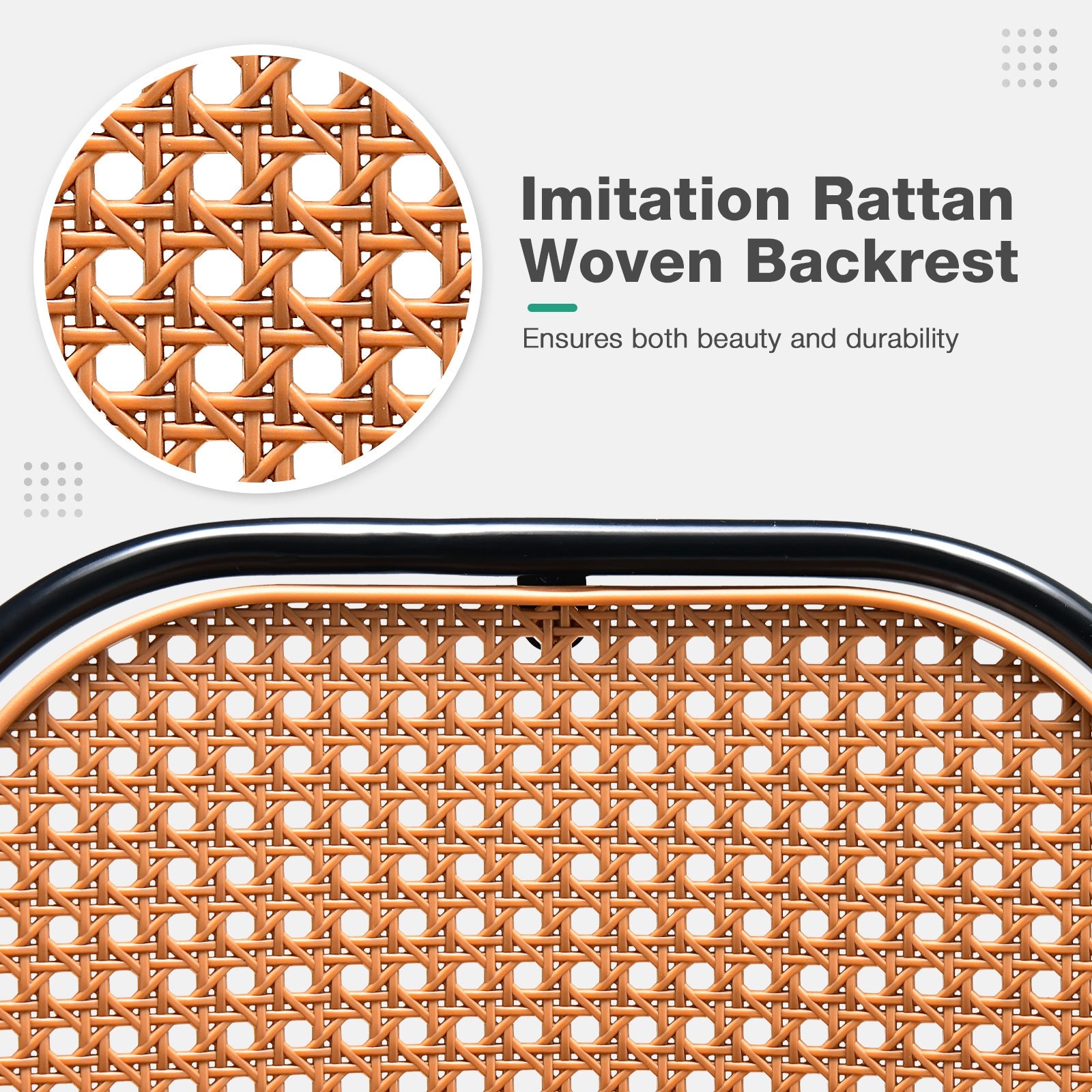 Set of 2 PU Leather Bar Stools with Rattan Backrest and Footrest-Green