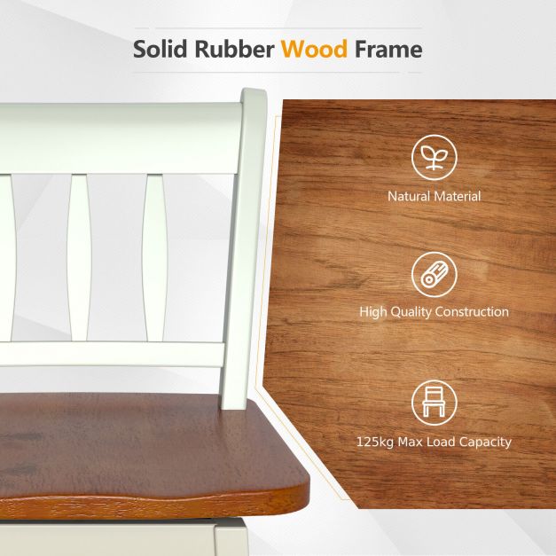 Set of 2 Rubber Wood Swivel Bar Stools with Backrest and Footrest-Cream