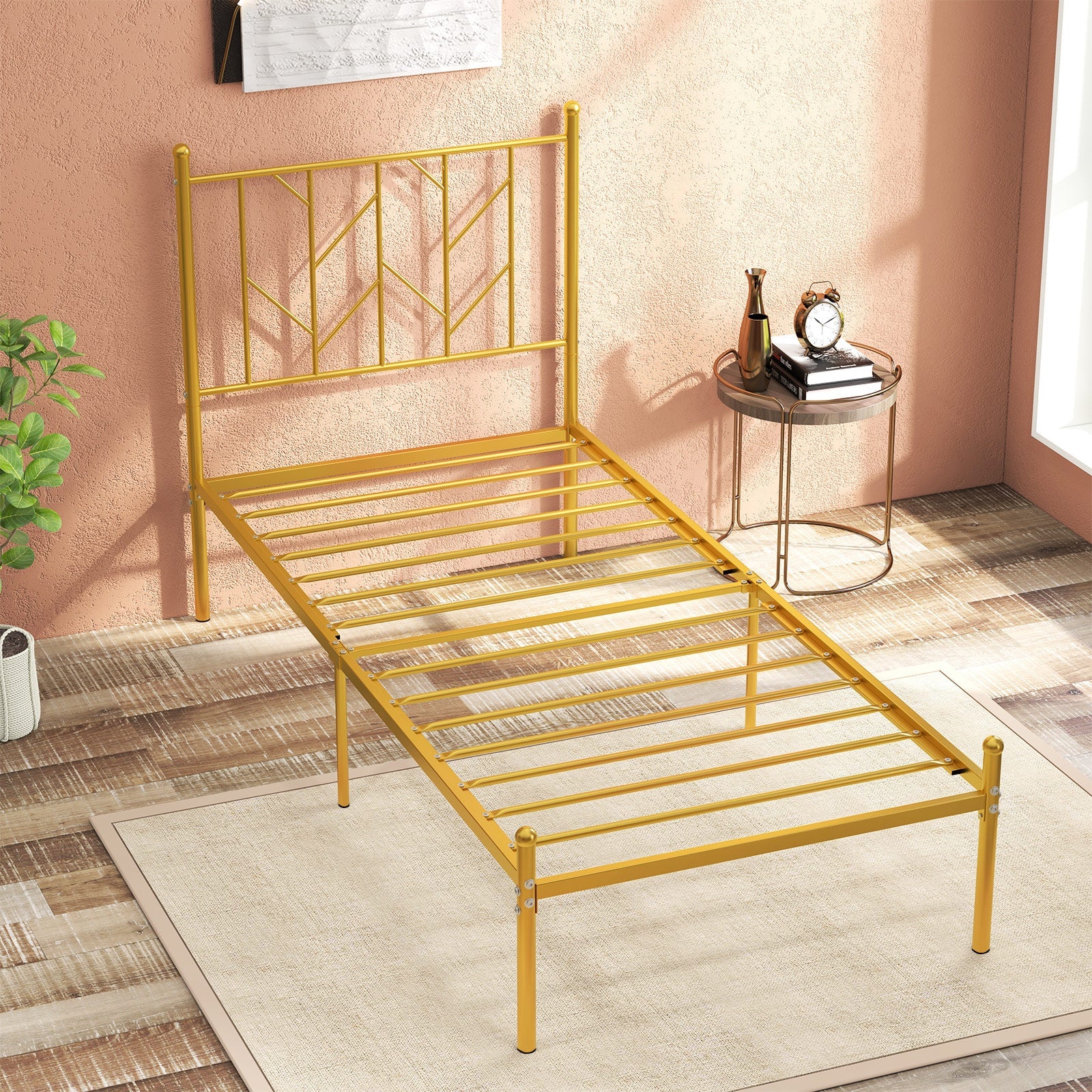 Single/Double Metal Platform Bed Frame with Headboard Black Golden-Single Size