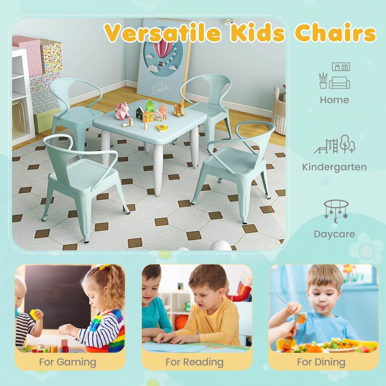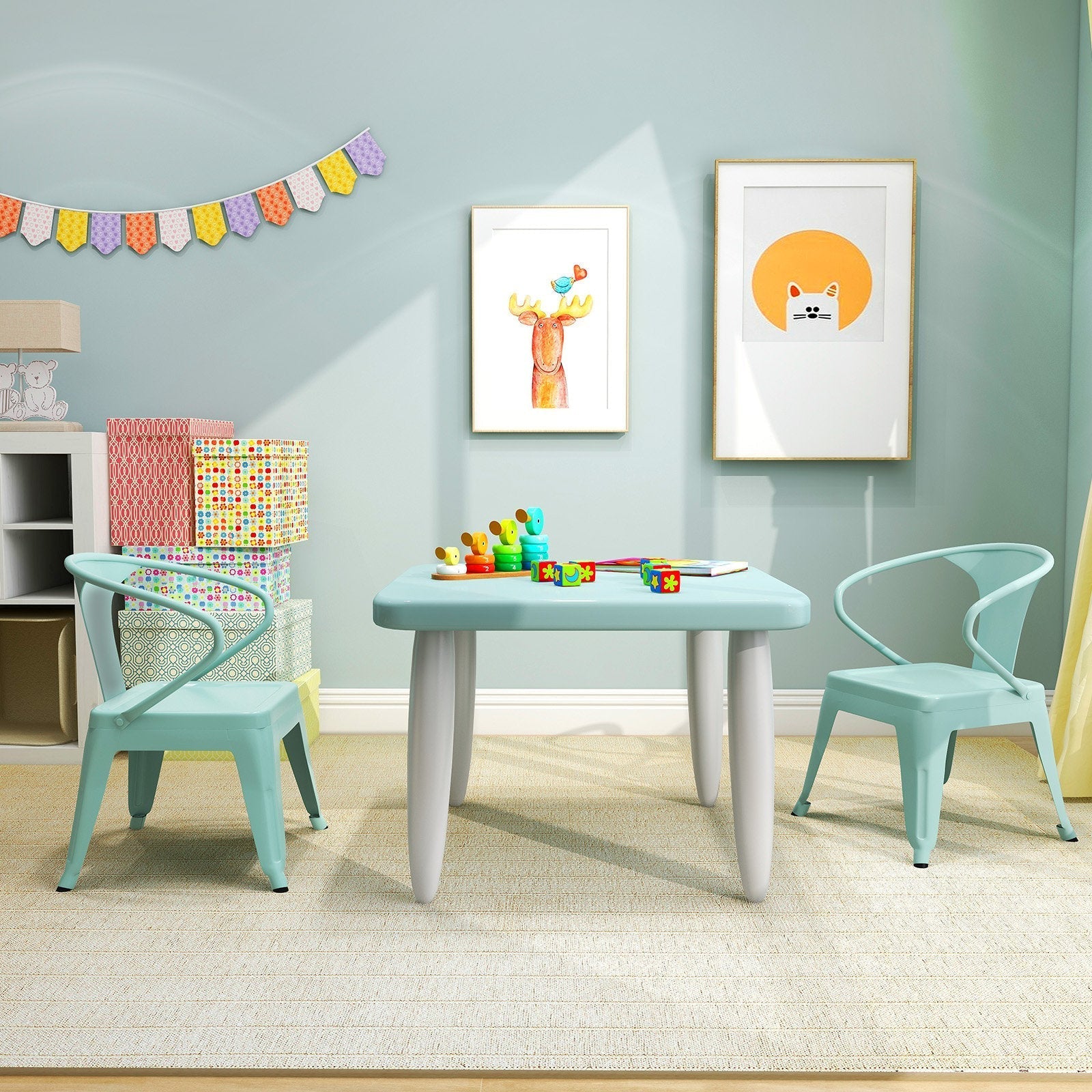 The ergonomic backrest and the large seat make the chair the ideal choice for children aged 3+ years old. And with the high-quality and sturdy steel together with the X-shaped construction on the bottom, the chair features a super high load capacity of 100kg. Other than that, the surface of the chair has been carefully coated to make it extra smooth for easy cleaning. Strong Weight Capacity: This kids chair is made of high-quality steel, which ensures robust structure and high durability. And each chair can load up to 100kg. In addition, the X-shaped bracket under the seat significantly increases the stability of the chair. Ergonomic Design with Better Comfort: The ergonomically designed and spacious seat with the curved and high backrest offers your beloved little one outstanding comfort during use. Thus, your little darling can sit and play more comfortably. Note: Please use under the direct supervision of adults. Careful and Exquisite Workmanship: To ensure the safety of your child when using it, the edges and corners of the chair are all rounded and smooth. What’s more, the anti-slip foot pads on the bottom not only improve the stability of the chair, but also protect the floor from scratches. Attractive Appearance for Many Places: The chair for children is a perfect combination of modern aesthetics and charming blue. With its attractive appearance, it can easily be used in different places such as children's room, preschool and kindergarten. No Assembly Need and Convenient Stackable Design: This kids chair set consists of 2 chairs which are pre-installed. You don't need to spend time and effort to install it. In addition, the size of the chairs is carefully selected so that they can be stacked to save space when not in use.