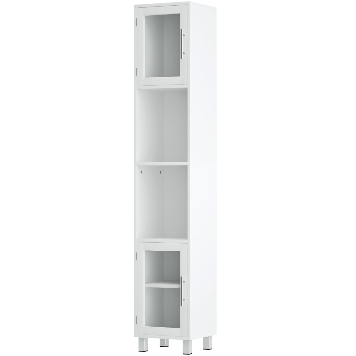 - 1 × Tall Bathroom Storage Cabinet with 2 Open Shelves & 1 Adjustable Shelf-White