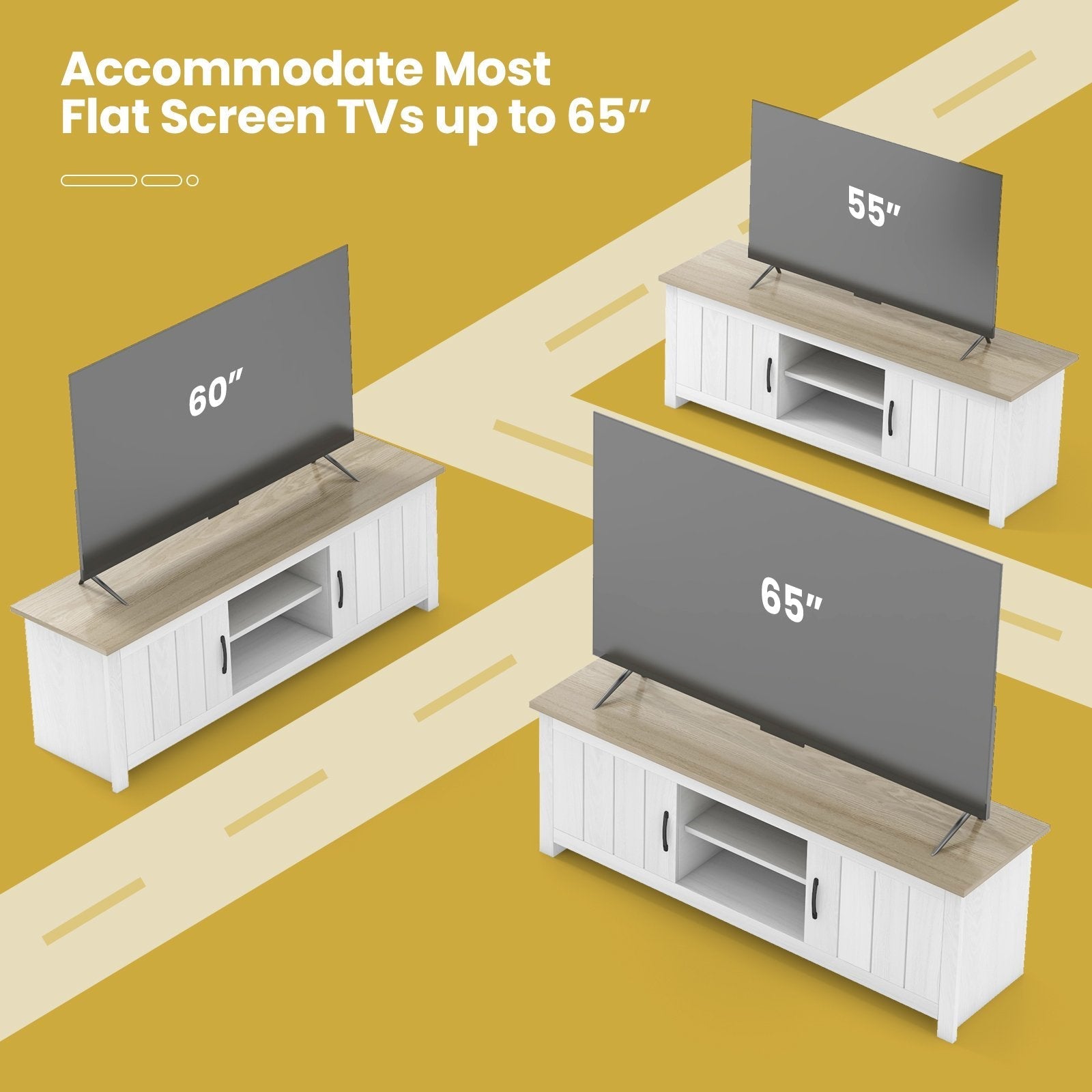 TV Stand with 2 Doors and Storage Shelves for TVs up to 65 Inches-White Oak