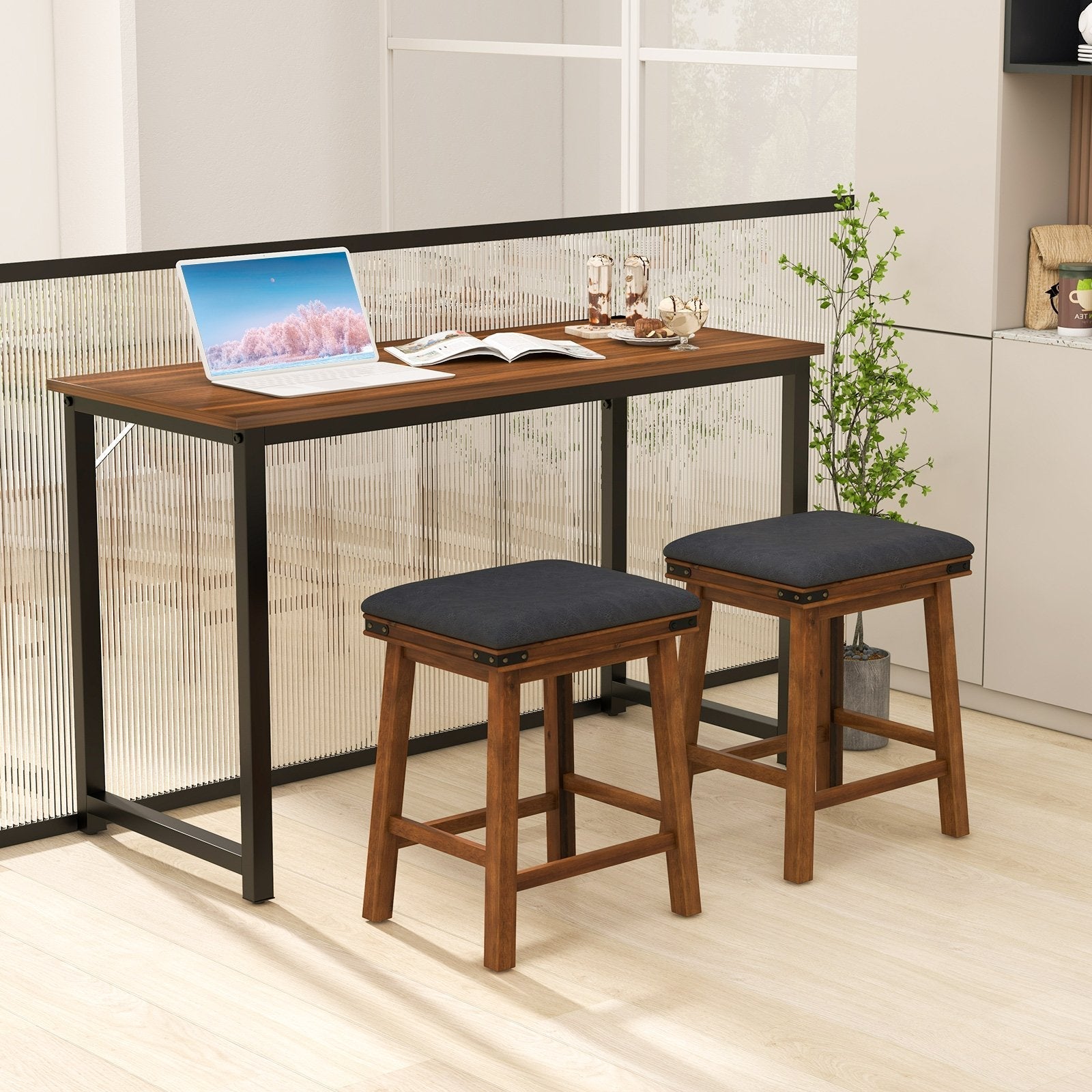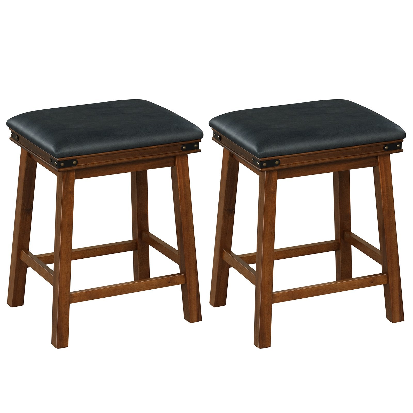 Experience the epitome of comfort with our exquisite backless bar stools. Crafted for your utter relaxation, these stools boast a soft seat cushion, ensconced in high-quality PU leather, and cushioned with the gentle touch of a soft sponge. Rest easy for hours on end, as these opulent stools provide luxurious comfort that knows no bounds. Infusing any space with a vintage farmhouse allure, their rivet accents and elegant finish effortlessly elevate decoration, creating a nostalgic charm. These barstools are engineered with stable construction and exquisite workmanship. Moreover, their waterproof upholstery is conveniently cleaned, guaranteeing easy maintenance. Ultimate Comfort of Padded Seat: These backless bar stools feature a luxurious upholstered seat, which is covered with skin-friendly PU leather and padded with soft sponge. It will give you unparalleled comfort for extended periods of sitting. Vintage and Farmhouse Style: Transform your space with the retro design of bar stools. Their rivet accents and refined finish effortlessly elevate any kitchen island, bar area, or home entertainment space, making them a stylish addition to your decor. Reliable Wood Construction: Crafted with selected materials, solid rubber wood and acacia wood, these kitchen stools are built to last. The sturdy wood frame allows you to enjoy your drinks or meals without worrying about wobbling or discomfort. Extra Thoughtful Features: The crossbars under seat not only reinforce the structure, but also serve as sturdy footrests for better relaxation. What’s more, there are also non-slip foot pads for enhanced stability and floor protection. Easy Assembly and Maintenance: No need to worry about complicated assembly processes. These bistro stools come with clear and detailed instructions, making it a breeze to assemble them. Furthermore, the low-maintenance upholstery can be easily cleaned, ensuring hassle-free upkeep.