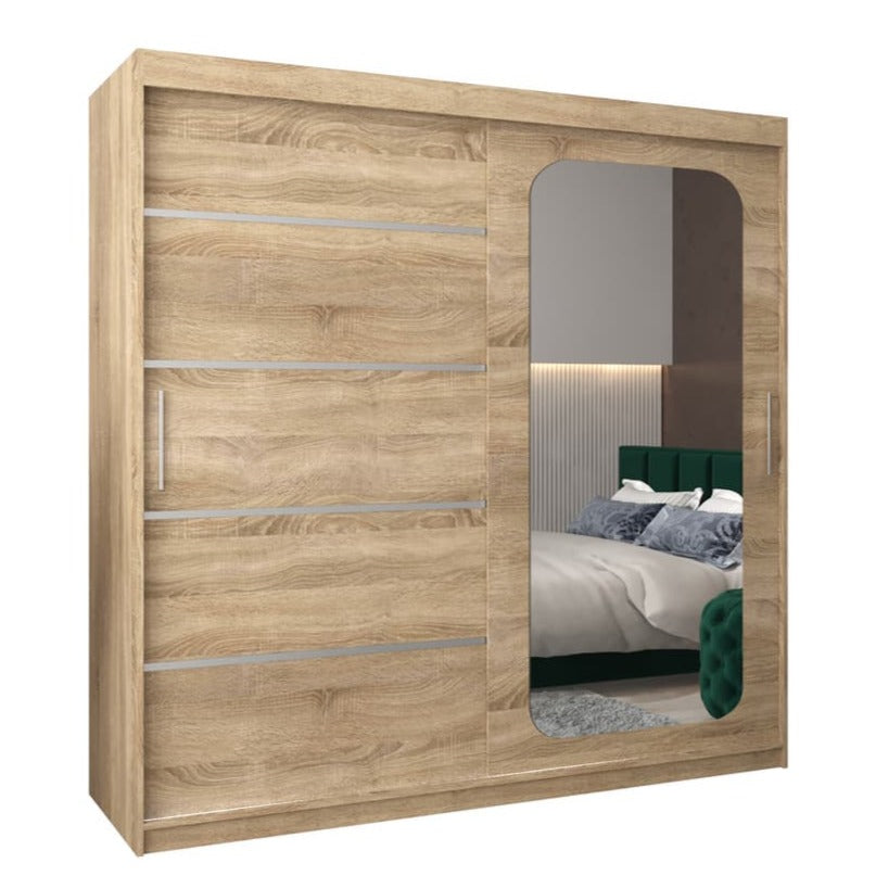 Artemis 2-Door Mirrored Sliding Wardrobe 180cm - Matt Black, Brown or Sonoma Oak