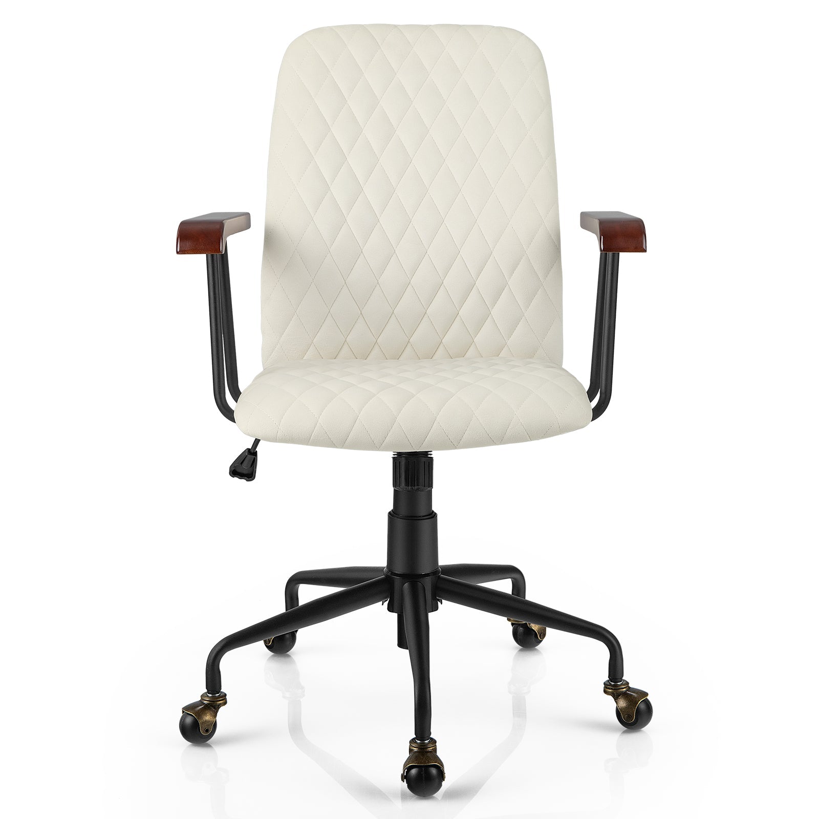 Velvet Home Office Chair with Wooden Armrest-Beige
