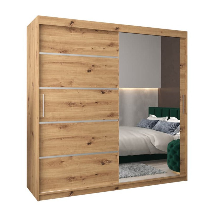 Artemis 2-Door Mirrored Sliding Wardrobe 180cm - Matt Black, Brown or Sonoma Oak