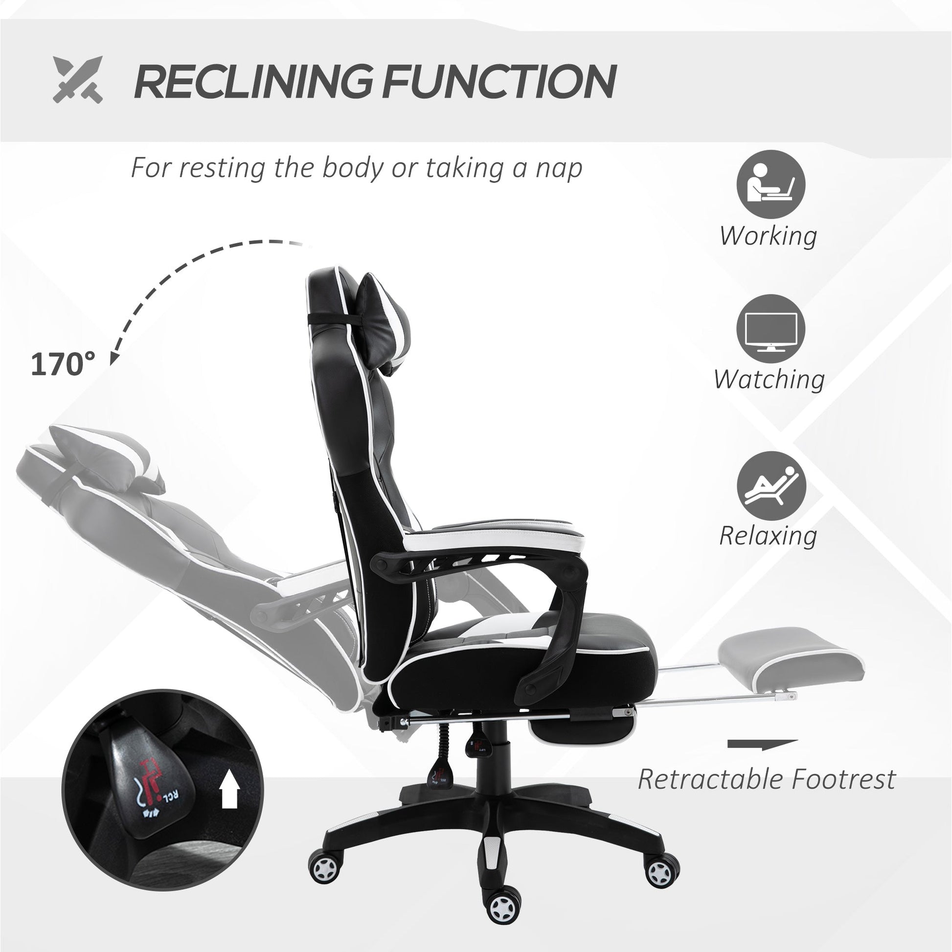 Vinsetto Computer Gaming Chair, Racing Desk Chair with Lumbar Support and Footrest, PU Leather Gamer Chair with Headrest and Swivel Wheels for Home, White