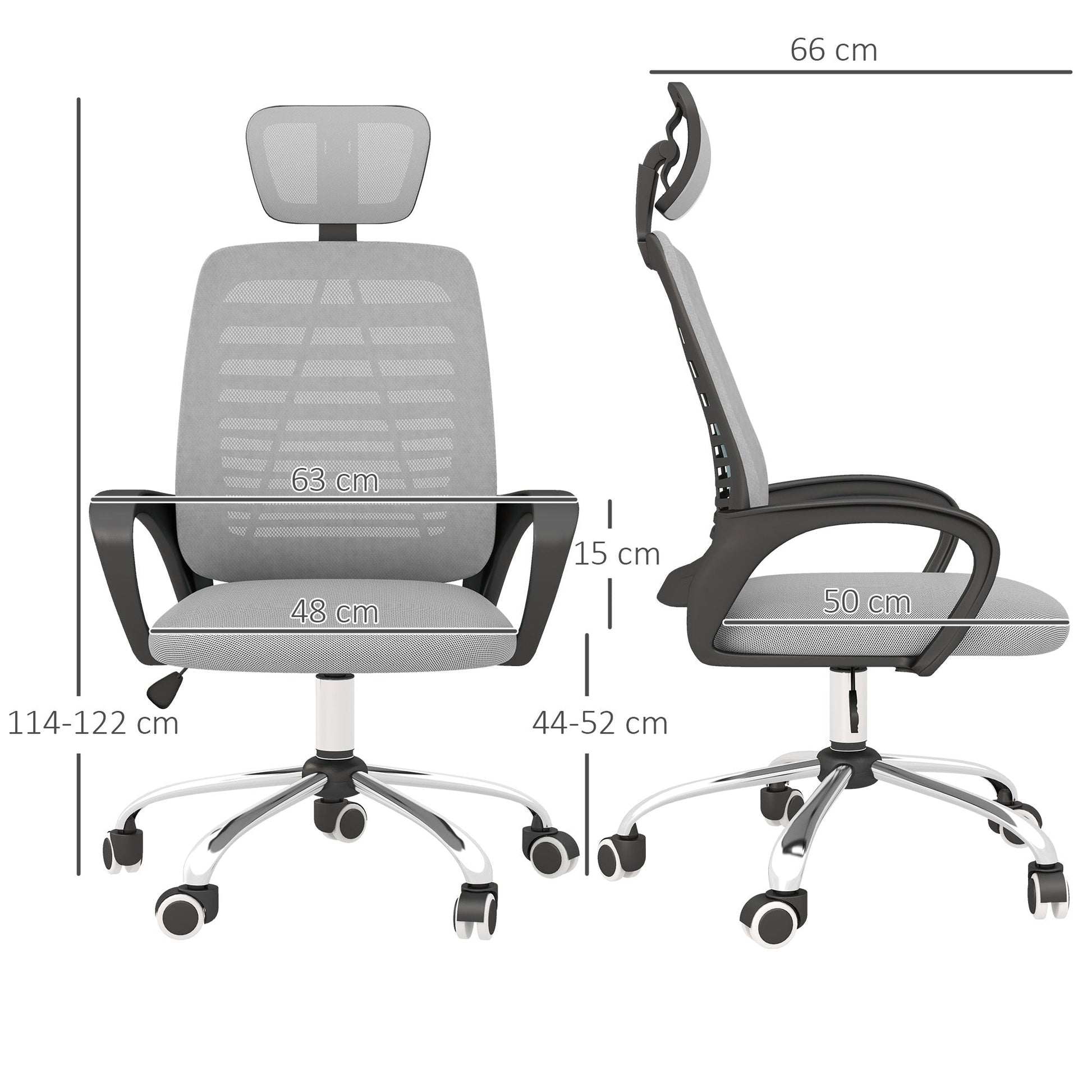 Vinsetto Ergonomic Office Chair, Mesh Desk Chair with Rotatable Headrest, Lumbar Back Support, Armrest, Grey