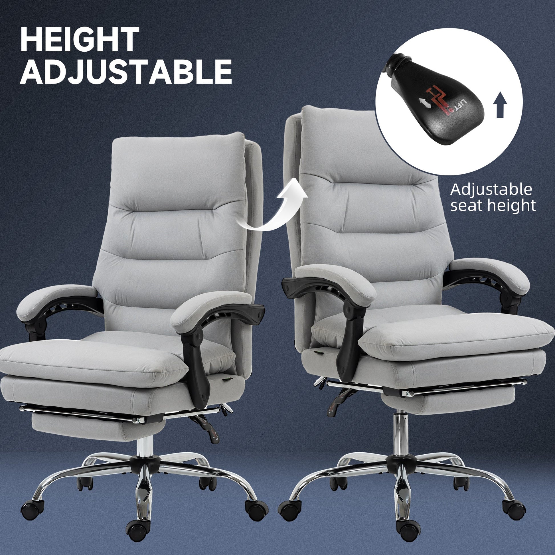 Vinsetto Office Chair with Footrest, Double Padding Ergonomic Desk Chair with 6-Point Vibration Massage and Back Heating, Microfibre Fabric with 135 Reclining Back, Grey