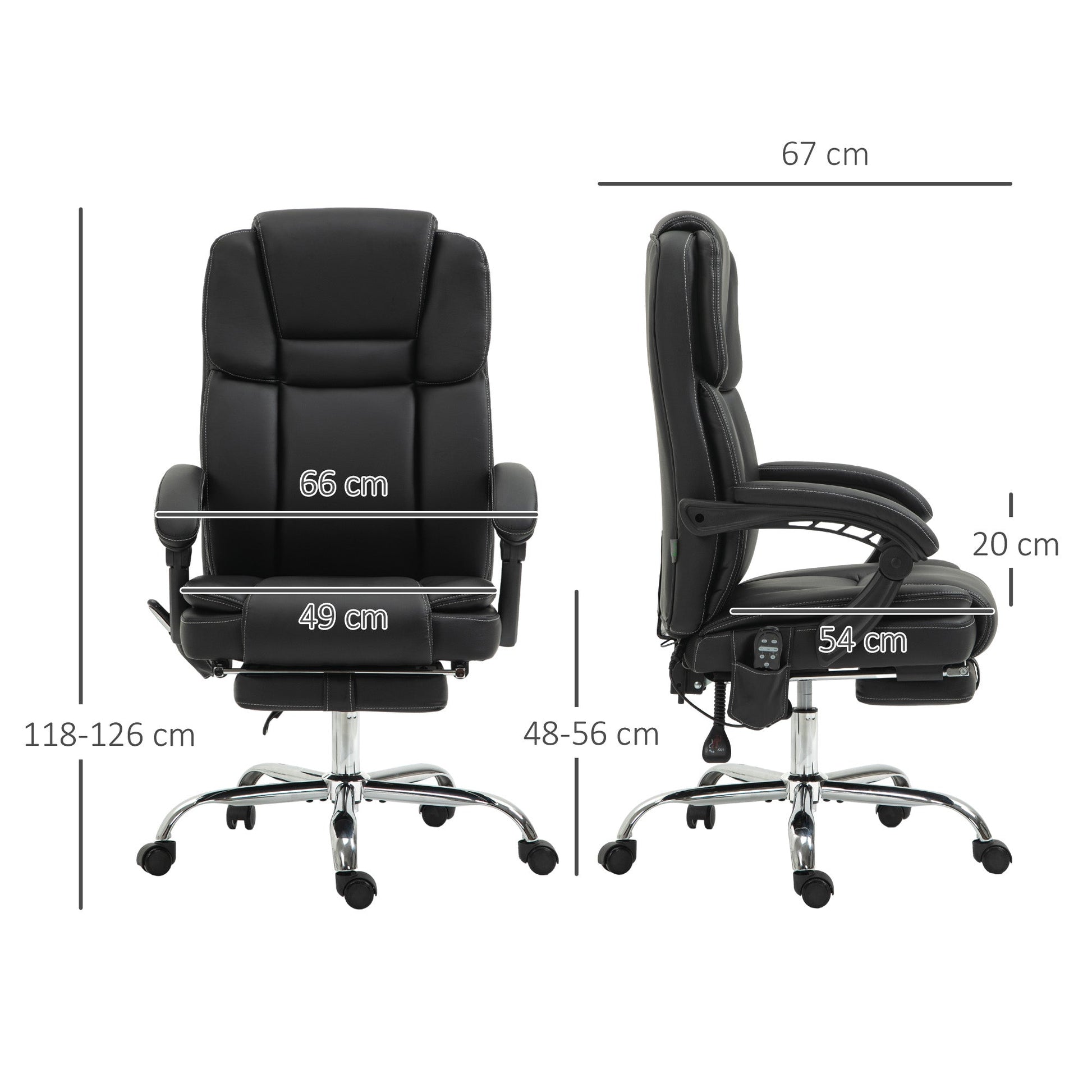 - Six vibrating massage points with three modes, three intensities, a timer and three lumbar heat settings
