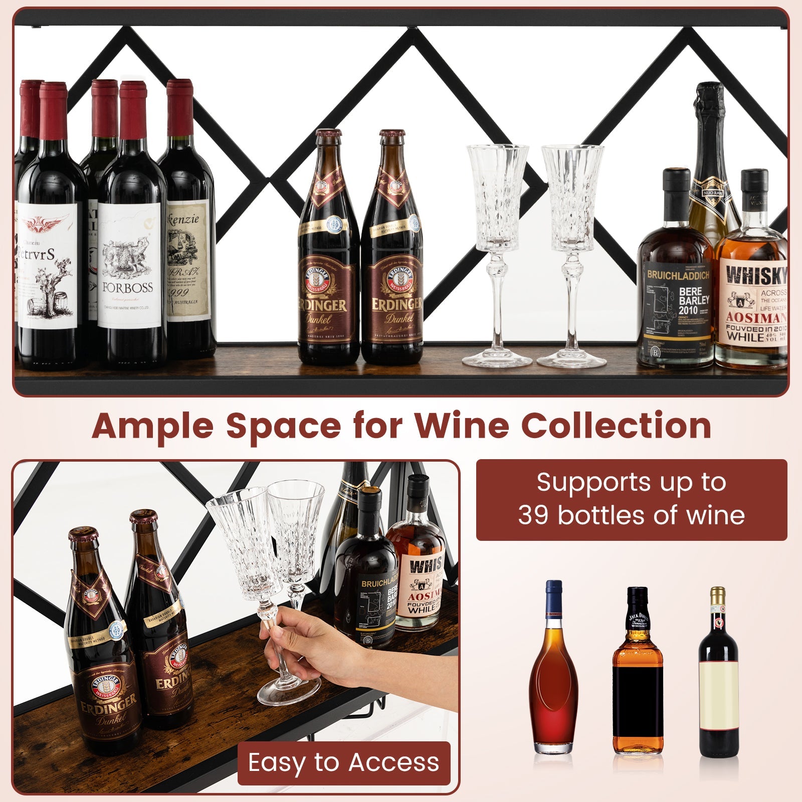 - Material: Metal + Engineered Wood Overall Dimension with Stemware Holders:51 cm x 26.5 cm x 60 cm (L x W x H) Overall Dimension without Stemware Holders:51 cm x 26.5 cm x 40 cm (L x W x H) Height of the Wine Bottle Rack: 36 cm Suitable Wine Bottle Diameter:7 cm Suitable Glass