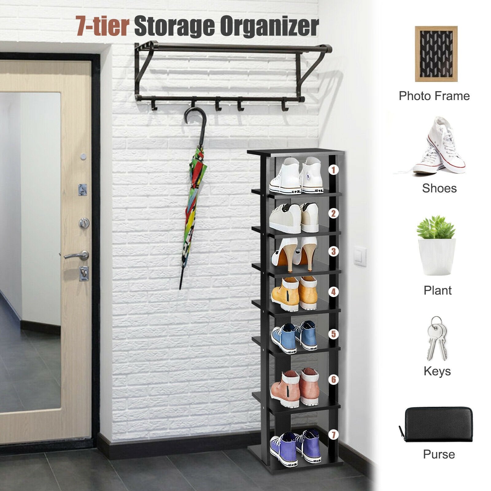 Wooden Vertical Shoe Rack with 7 Shelves-Black