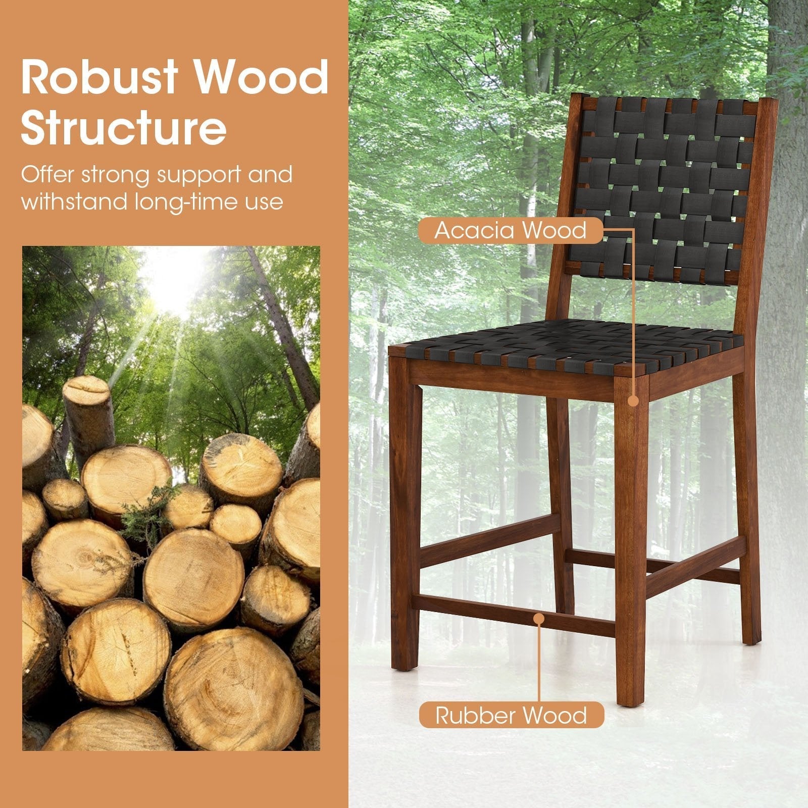 Woven Bar Stools Set of 2 with Faux PU Leather Straps-Black & Brown