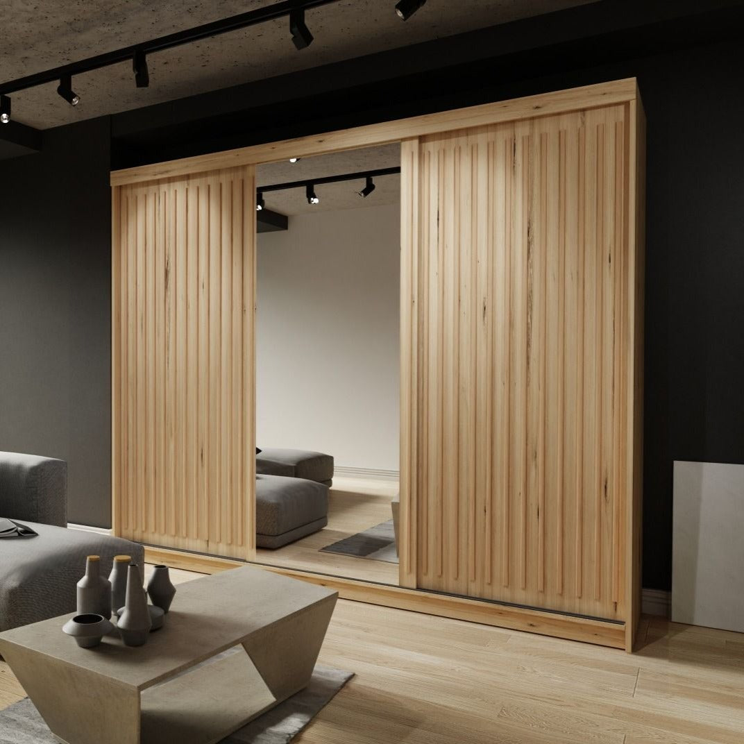 Zeus Sliding Door Wardrobe Available in Oak,Grey,White or Black 203 cm