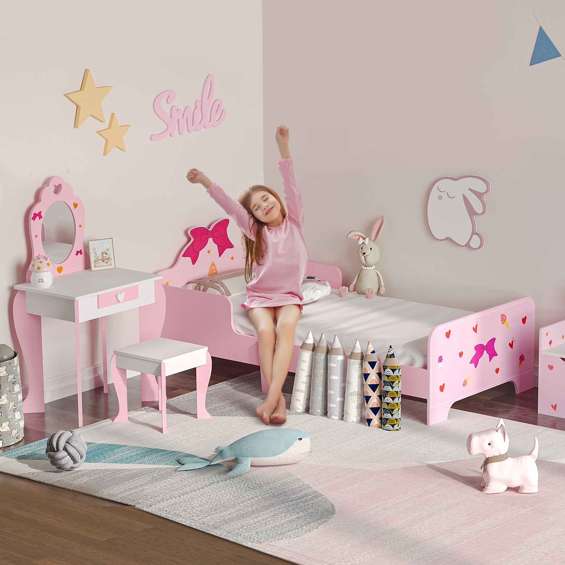 ZONEKIZ 3PCs Kids Bedroom Furniture Set with Bed, Dressing Table and Stool, Princess Themed, for 3-6 Years Old, Pink